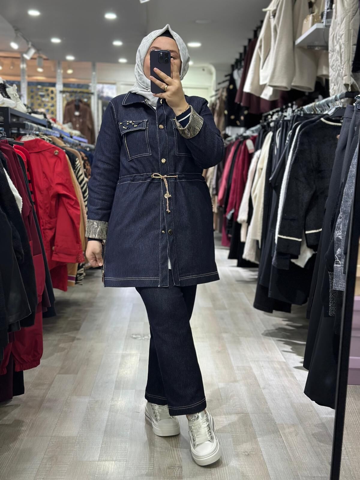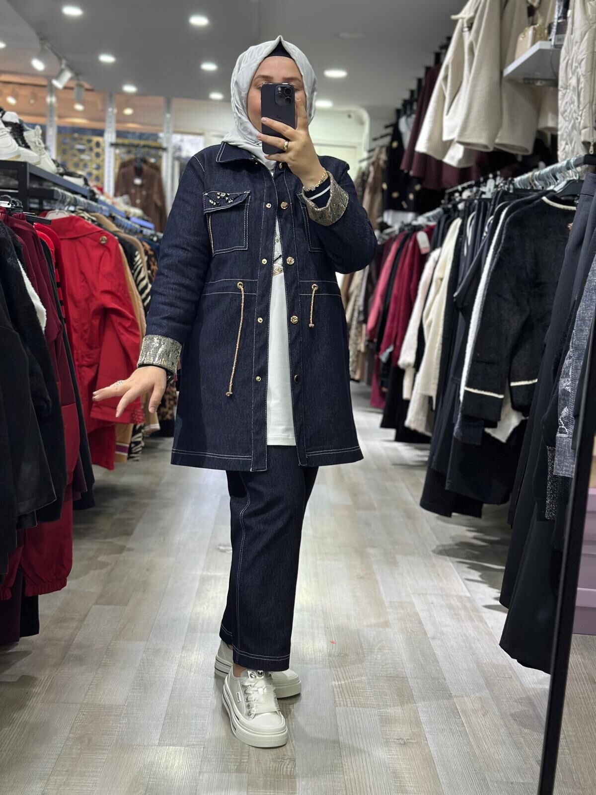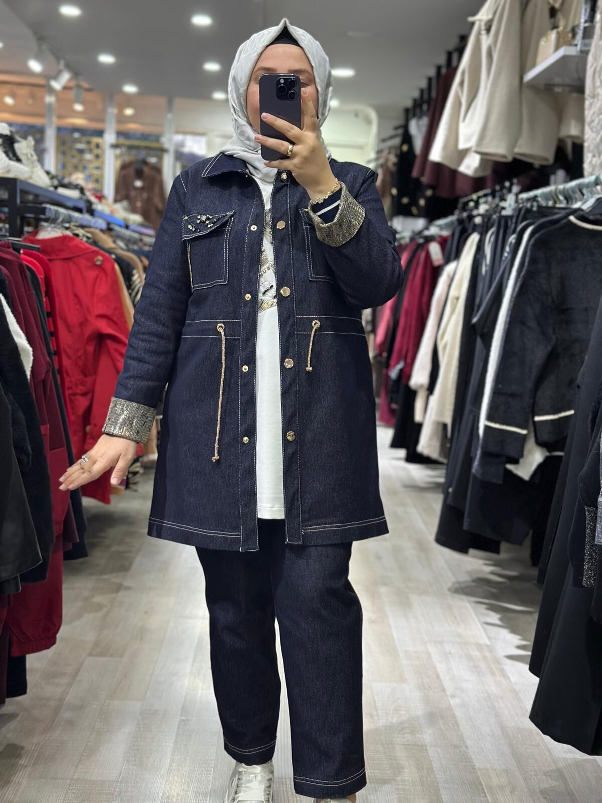 Ürün 3' lü kot takım (Ceket, pantolon ve iç sweat.) olup, pantolon beli lastiklidir. Krem, siyah ve lacivert olmak üzere üç rengi mevcuttur.