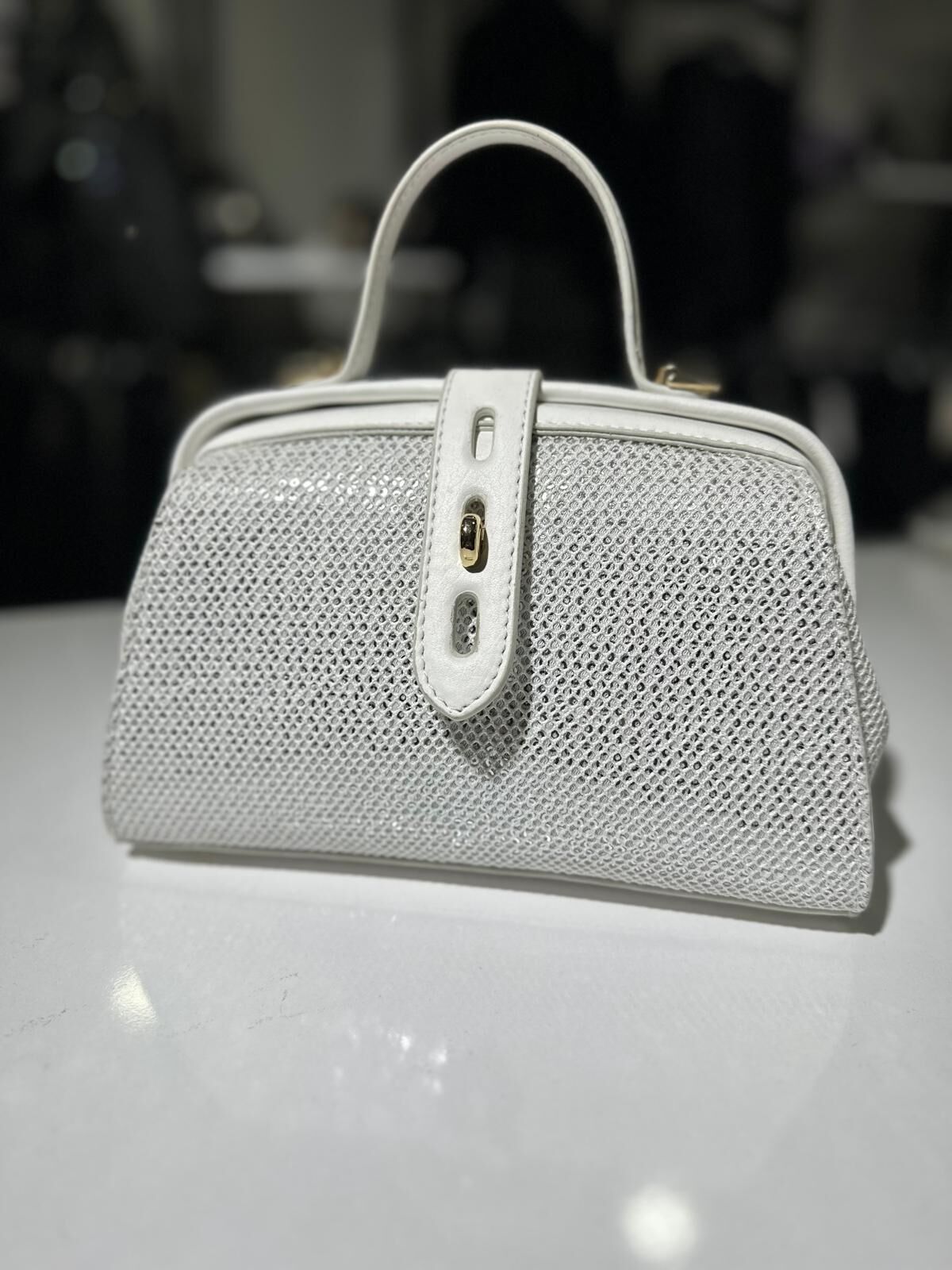 Ürün suni deri, payet detaylı ve iki bölmelidir.