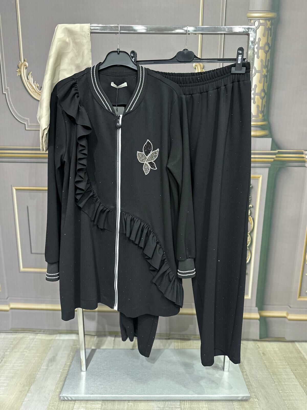 Ürün serpme taş detaylı olup, pamuklu ve fermuarlıdır.