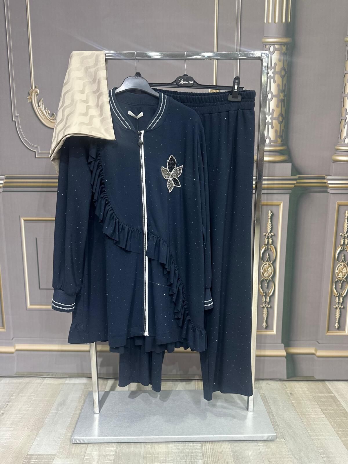 Ürün serpme taş detaylı olup, pamuklu ve fermuarlıdır.